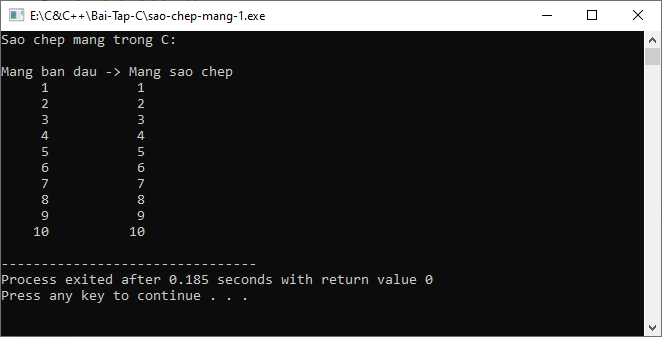 Đề bài: Viết chương trình C sao chép các giá trị của mảng này sang mảng khác.