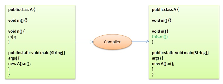 n();// trình biên dịch sẽ thêm this để gọi phương thức n() như this.n()